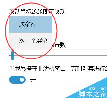 5、在点击【滚动鼠标滚轮即可滚动】选项框后弹出的选项下,点击选择想要设置的滚动行数完成设置。(如图所示)