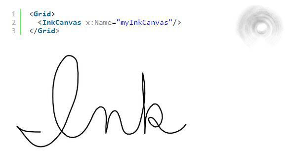 在Win10中,借助DirectInk平台,开发者可以非常容易的在应用中集成数字墨水书写功能。这些功能在微软的Edge浏览器、OneNote应用以及手写板中都有采用。微软通过一些示例展示了集成方法。比如,只需在应用的UI界面中添加以下代码即可将画布嵌入到用户界面中。然后对myInkCanvas对象的InkPresenter属性进行自定义就可以设置支持的输入方式(手指、手写笔或鼠标)以及对“画笔”属性进行调整。