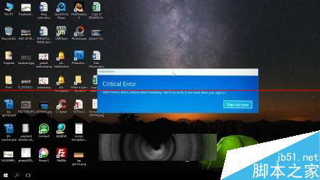“严重错误——开始菜单和Cortana无法工作。我们将在你下次登陆时进行修复。”