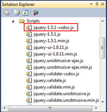 asp.net MVC3项目创建的时候就已经包含jQuery和jQuery智能提示的文件了,如果你想再其它类型的项目使用jQuery智能提示,可以通过下载jQuery.vsdoc的NuGet包来实现,不过jQuery1.6以后的版本默认在NuGet包里已经包含了该vsdoc文件了,不用在单独下载了。