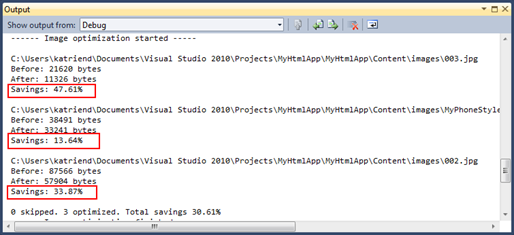 Visual Studio的扩展工具Image Optimizer使用SmushIt和PunyPNG来优化压缩图片,在项目图片文件夹下运行这个扩展可以将该目录下所有的图片文件进行压缩。压缩比率通常在15%到40%。