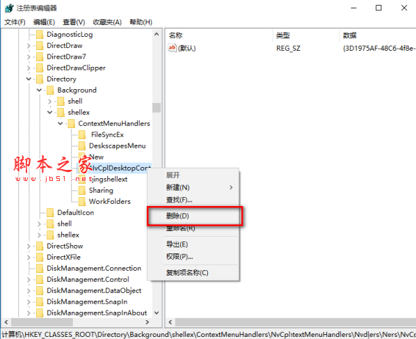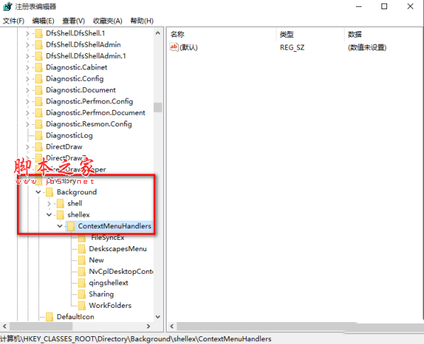 5、 双击,找到HKEY_CLASSES_ROOTDirectoryBackgroundshellexContextMenuHandlers