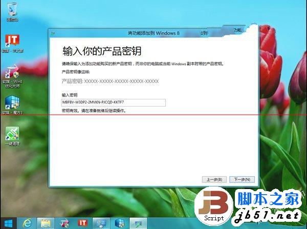 3、输入以下产品密钥:MBFBV-W3DP2-2MVKN-PJCQD-KKTF7,然后单击下一步;