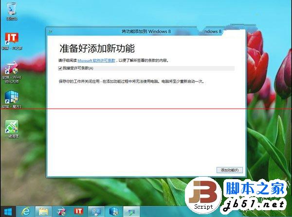 4、选中指示接受许可协议条款的复选框,然后单击添加功能;
