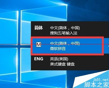 2、同时按键盘组合键“Windows+空格键”实现不同输入法之间的切换操作:将当前输入法切换到“中文(简体 中文)微软拼音”。如图所示: