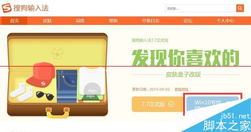 5、如果我们希望通过第三方输入法来使用Cortana进行搜索,该如何操作呢?目前比较好的解决方法,就是下载与Win10正式版兼容的输入法。在此以“搜狗输入法”为例,进入其官方网站,找到“Win10专版”按钮点击进入下载界面。