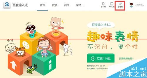 7、此外,我们还可以在Edge浏览器中使用“搜狗拼音输入法”来输入中文,当然也可以使用“百度五笔输入法”来输入汉字。进入“百度输入法”官方网站,点击页面最上侧的“五笔版”进入。
