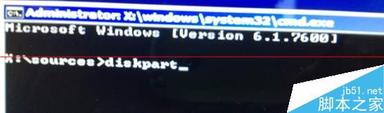 3、输入”Diskpart”(不用输入引号,下同),并按回车,进入操作界面
