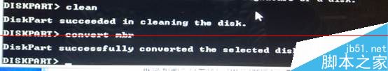 成功地清除了磁盘的字样提示,接着再输入convert mbr,会看到diskpart已将所选磁盘成功地转更换为mbr格式,然后重装一下系统就可以正常进入到桌面了。。
