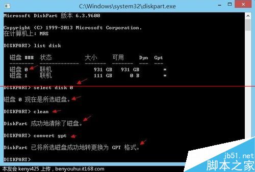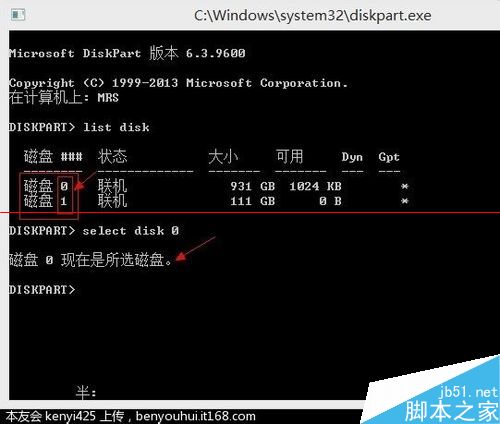 5、输入:”select disk 0”,选择disk 0为当前操作的磁盘