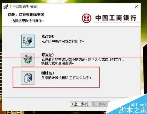 1、卸载已安装的“工行网银助手”。直接运行安装程序即可选择“卸载”,或从控制面板卸载。