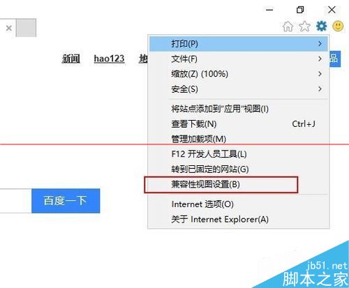 2、打开IE浏览器,点击“工具”——“兼容性视图设置”。