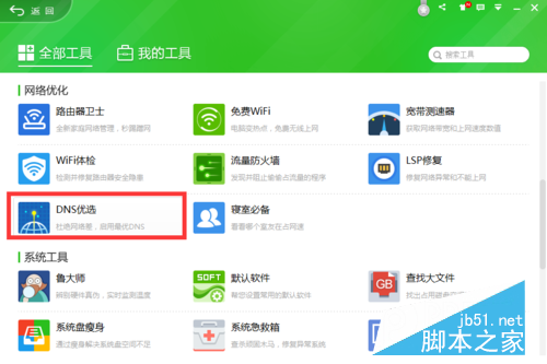 其实导致“Win10应用商店”下载速度缓慢的重要原因是DNS设置不当所造成的。对此可以使用“360DNS优化”工具来选择最佳DNS来解决这个问题。在360安全卫士“更多功能”列表中找到“DNS优选”工具进入。