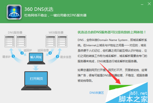当然,对于优化DNS操作后所造成的其它故障,也可以通过在此界面中点击“DNS恢复区”来还原之前的DNS设置。