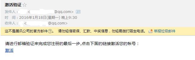using System.Net.Mail;//邮件发送需引用 public ActionResult bindStep3(ModelCompany c){..............................MailAddress MessageFrom = new MailAddress("xxxxx@qq.com"); //发件人邮箱地址 string MessageTo = company.COMPANY_EMAIL; //收件人邮箱地址 string MessageSubject = "激活验证"; //邮件主题 string MessageBody = "请进行邮箱验证来完成您注册的最后一步,点击下面的链接激活您的帐号:<br><a target="_blank" rel="nofollow" style="color: #0041D3; text-decoration: underline" href="">激活</a>"; //邮件内容 (一般是一个网址链接,生成随机数加验证id参数,点击去网站验证。) if (SendMail(MessageFrom, MessageTo, MessageSubject, MessageBody)){Response.Write("<script type="text/javascript">alert("发送邮件失败");</script>");}else{Response.Write("<script type="text/javascript">alert("发送邮件失败");</script>");}TempData["CompanyBind3"] = company;return View("bindStep3");}public bool SendMail(MailAddress MessageFrom,string MessageTo,string MessageSubject,string MessageBody)//发送验证邮件{MailMessage message = new MailMessage();message.To.Add(MessageTo);message.From = MessageFrom;message.Subject = MessageSubject;message.SubjectEncoding = System.Text.Encoding.UTF8;message.Body = MessageBody;message.BodyEncoding = System.Text.Encoding.UTF8;message.IsBodyHtml = true; //是否为html格式 message.Priority = MailPriority.High; //发送邮件的优先等级 SmtpClient sc = new SmtpClient();sc.EnableSsl = true;//是否SSL加密sc.Host = "smtp.qq.com"; //指定发送邮件的服务器地址或IP sc.Port = 587; //指定发送邮件端口 sc.Credentials = new System.Net.NetworkCredential("xxxxx@qq.com", "xxxxx"); //指定登录服务器的用户名和密码(注意:这里的密码是开通上面的pop3/smtp服务提供给你的授权密码,不是你的qq密码)try{sc.Send(message); //发送邮件 }catch(Exception e){Response.Write(e.Message);return false;}return true;}实现效果: