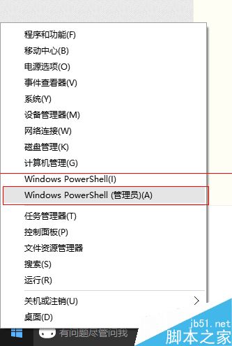 3、右键点击“开始”徽标,选择“Windows PowerShell(管理员)”