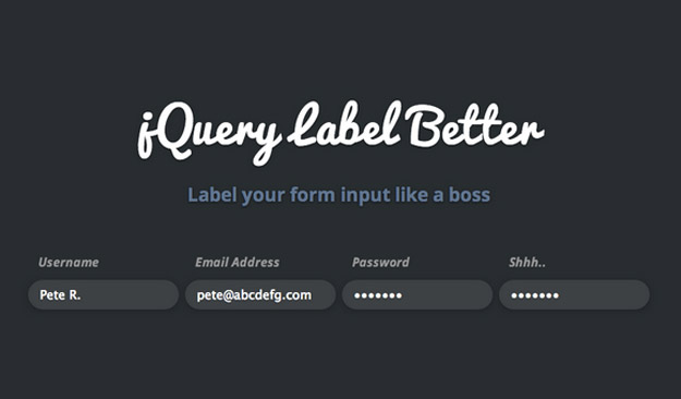 jQuery Label Better 就像个优雅动画的老大一样帮助你在表单输入上不占空间地定标签。这个插件最独特的是你需要做的所有工作仅是添加一个占位符的文本,我们将在当用户需要的时候显示标签。