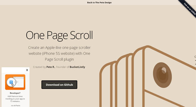One Page Scroll是一个jQuery插件,其简化了创建类似网站的难度。它只需要很少的设置,只需要创建HTML结构,调用函数你就已经就绪了。可选的,作为附加功能,其速度和循环行为也可以设置。而且它支持每个页面的SEO友好型URL。