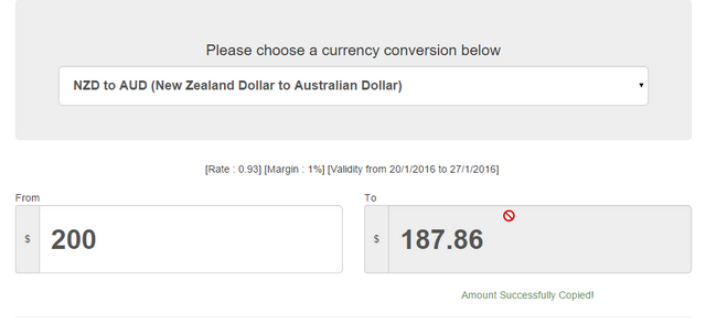 Clipboard.js删除了Flash组件并且优雅地解决了这个问题,需要做的只是引入其脚本,在HTML标签上赋一个“data-clipboard-target”属性然后写一小段JavaScript片段。为了演示假定有一个货币转换应用,在一个文本框中输入数值时同时将兑换结果显示在另一个文本框中,当点击文本框时,会触发事件将其复制到剪贴板然后显示一条消息。