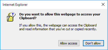 <scriptsrc="~/Scripts/clipboard.min.js"></script><script>varclipboard=newClipboard('#AmountTo');clipboard.on('success',function(e){$("#messageBox").text("AmountSuccessfullyCopied!").show().fadeOut(2000);e.clearSelection();});clipboard.on('error',function(e){$("#messageBox").text("ErrorCopyingAmount").show().fadeOut(2000);});$('#AmountFrom').click(function(){$("#AmountFrom").val("");});</script>至此,会发现我们只是引入了clipoard.js,如果实例化Clipboard成功,然后会给事件赋予一些动作,否则它会触发一个错误,是这样吧?这一切都很好,它能兼容所有最新的浏览器,除了IE,它会给出下面这样的一个消息。