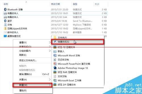 2、打开SendTo文件夹后,在该文件夹空白处右键“新建”>"快捷方式"。如图所示: