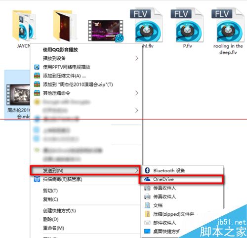 5、完成以后,即可在桌面任意文件夹中右键“发送OneDrive,这样就可以直接上传文到“OneDrive”了。省去打开OneDrive再上传的麻烦。