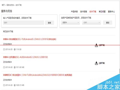 5、小编的卡托是一线大牌了,到该厂商的网站的服务与支持栏目下,在产品类型中选择数据卡,然后在右方选择上一步找到数据卡型号,选择搜索即;当然也可以直接键入型号的关键字进行搜索