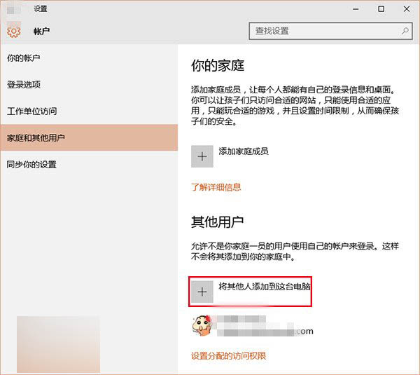 4、验证成功后,专用账户添加完成,回到“家庭和其他用户”界面,点击“设置分配的访问权限”