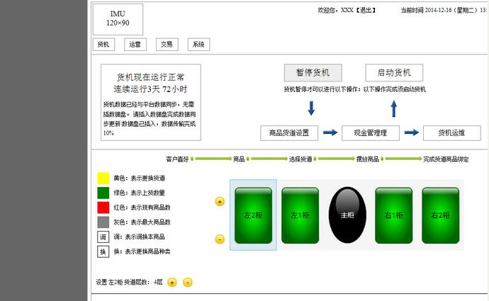 @{ViewBag.Title = "货道设置";Layout = Url.Content("~/Views/Backstage/MachineMng/Layout.cshtml");}<!DOCTYPE html><html><head><title>@ViewBag.Title</title><style type="text/css">.div-button1{float: left;width: 120px;height: 35px;border: solid 1px #999;font-size: 18px;line-height: 35px;text-align: center;cursor: pointer;}.div-button2{float: left;width: 120px;height: 30px;border: solid 1px #999;font-size: 14px;line-height: 30px;text-align: center;cursor: pointer;}.div-arrow{float: left;height: 55px;padding-top: 5px;}.div-arrow2{float: left;width: 35px;height: 22px;padding-top: 6px;margin-left: 10px;}</style><script type="text/javascript" src="~/Scripts/jquery-1.8.2.js"></script><script type="text/javascript" src="~/Scripts/My97DatePicker/WdatePicker.js"></script><script type="text/javascript">$(function () {});</script></head><body><div style="height: 200px; border: solid 1px #999; border-top: 0;"><div style="float: left; width: 200px; height: 150px; border: solid 1px #999; margin: 20px; padding: 5px;"><div style="text-align: center; font-size: 18px; line-height: 25px; padding-top: 10px;">货机现在运行正常<br />连续运行3天 72小时</div><div style="padding-top: 10px; line-height: 20px;">货机数据已经与平台数据同步,无需插数据盘。请插入数据盘完成数据同步更新/数据盘已插入,数据传输完成10%</div></div><div style="float: right; width: 600px; height: 160px; margin: 20px; margin-right: 50px;"><div class="div-button1" style="margin-left: 100px; cursor: default; background-color: #eee;">暂停货机</div><div onclick="gotourl("@Url.Content("~/Backstage/MachineMng/StartCargo/Index")")" class="div-button1" style="margin-left: 50px;">启动货机</div><div style="float: left; width: 100%; height: 33px; line-height: 33px; text-align: center;"><div style="float: left; margin-left: 100px;">货机暂停才可以进行以下操作:以下操作完成须启动货机</div></div><div style="float: left; width: 100%; height: 60px; line-height: 60px; text-align: center;"><div class="div-arrow" style="margin-left: 150px;"><img alt="" src="@Url.Content("~/Images/Cargo/roadset_arrow_down.png")" /></div><div class="div-arrow" style="margin-left: 160px;"><img alt="" src="@Url.Content("~/Images/Cargo/roadset_arrow_up.png")" /></div></div><div class="div-button2" onclick="gotourl("@Url.Content("~/Backstage/MachineMng/RoadSet/Index")")" style="margin-left: 50px;">商品货道设置</div><div class="div-arrow2" style=""><img alt="" src="@Url.Content("~/Images/Cargo/roadset_arrow_right.png")" /></div><div class="div-button2" style="margin-left: 5px;">现金管理理</div><div class="div-arrow2" style=""><img alt="" src="@Url.Content("~/Images/Cargo/roadset_arrow_right.png")" /></div><div class="div-button2" style="margin-left: 5px;">货机运维</div></div></div>@RenderBody()</body></html>Index页面代码(路径"~/Views/Backstage/MachineMng/RoadSet/Index.cshtml"):