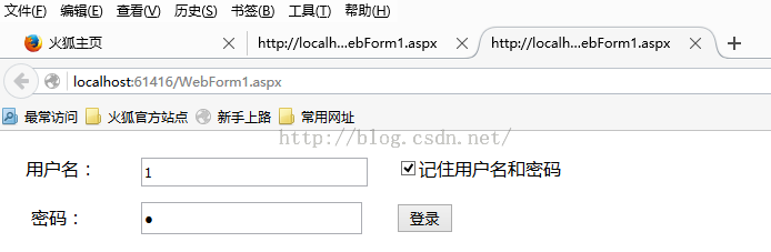 <span style="font-family:KaiTi_GB2312;font-size:18px;"> protected void Page_Load(object sender, EventArgs e) { if (Request.Cookies["ID"] != null && Request.Cookies["PW"] != null) { TextBox1.Text = Request.Cookies["ID"].Value.ToString(); TextBox2.Text = Request.Cookies["PW"].Value.ToString();//将键名为ID的Cookie的值读出,并在文本框TextBox2中显示出来 }}</span> 当再次加载页面的时候就会出现如下图所示。