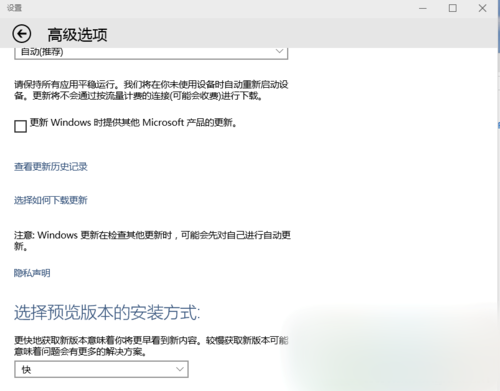 5、我们在“选择预览版的安装方式”下面的下拉菜单中选择“快“即可;经过以上操作,我们再去刷新下系统更新信息,是不是就能正常更新了呢!以上就是脚本之家小编汇总的win10无法收到10532版本更新推送的解决方法,希望可以帮助到大家,更多内容请关注脚本之家网站!