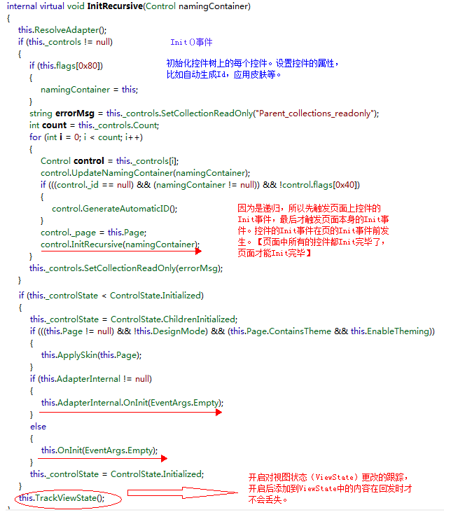 private void PerformPreInit(){ this.OnPreInit(EventArgs.Empty); this.InitializeThemes(); this.ApplyMasterPage(); this._preInitWorkComplete = true;}3.触发InitRecursive事件