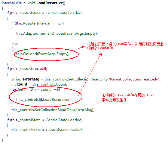 大名鼎鼎的Page_Load就是在这里执行的。不过是先执行页面本身的Load事件再执行页面控件的Load事件哦,这时候前面给控件赋的值,表单提交过来的数据,ViewState等等都可以使用了,IsPostBack的原理就是判断是否有name为__VIEWSTATE的数据提交过来