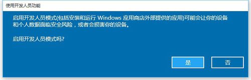 首先,你点击上方的“了解更多信息”来查看关于开发人员模式的介绍。要注意的一点是:开发人员模式可能会让你的设备遭遇不测。在这个对话框中,认真阅读完对话框的文字后点击“确认”键。