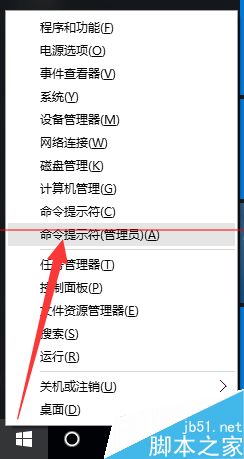 就是直接右击桌面左下角的“Windows”按钮,从其右键菜单中选择“命令提示符(管理员)”项实现以“管理员”身份运行“命令提示符”窗口。