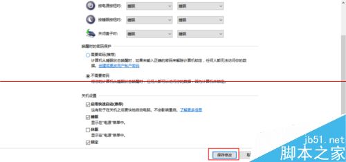 7、在“唤醒时的密码保护”下,将“需要密码(推荐)”更改为“不需要密码”。