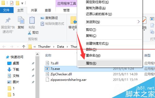 5、待打开文件夹后,右击“7z.exe”文件,从弹出的右键菜单中选择“属性”项以打开文件属性窗口。