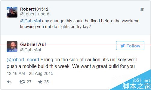 其实在昨天的时候,Gabriel Aul早就透露过自己早已正在使用Windows 10 Mobile build 10532的事实。但是在今天的Twitter上,他带来了一个“坏消息”。