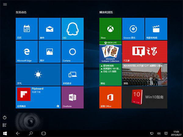 此时尝试切换平板模式,会发现任务栏自动隐藏已经生效。需要注意的是,在使用开始屏幕时,不会隐藏任务栏。
