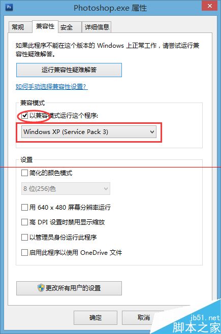 3、勾选“以兼容模式运行这个程序”,在下面的下拉菜单中选择“Windows xp (service pack 2)”或者“Windows xp (service pack 3)”选项,然后点击确定按钮。