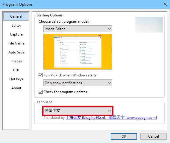 注意:安装后默认英文,你可以在File→Program Options→General→Languages处将语言修改为简体中文。