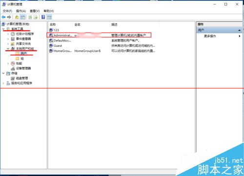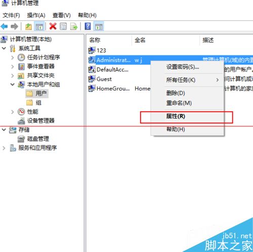 2、依次打开。系统工具--本地用户和组--用户。找到登陆了微软账号的用户。右键打开"属性"。