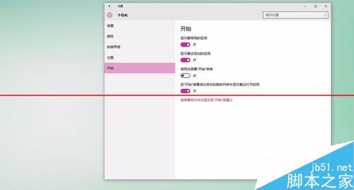 3、在开始选项下面有:使用全屏幕“开始”菜单,开启可关闭即可对metro界面全屏设置
