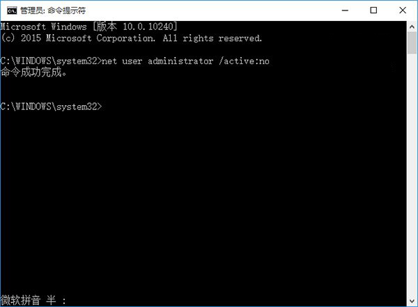 此时管理员账户被关闭。若要再次开启,反复执行上述过程即可。