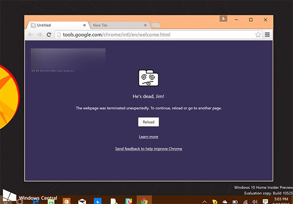 在最新的Win10预览版10525上,Chrome浏览器64位版(Beta和Canary)会遇到崩溃问题。产生故障的原因是谷歌使用了未经授权的“钩子”链接微软APIs。很明显,谷歌不想购买微软的64位系统开发套装工具,售价9995美元(不是开玩笑),谷歌选择了替代品。由于微软在Build 10525中改变了内存运作方式,导致谷歌方法不能再被使用。