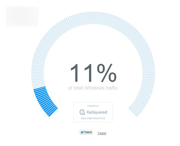 英国数据分析公司GoSquared推出了Win10安装量实时统计工具,在该页面很难确定准确的数字,好在GoSquared给出了一些有趣的解读。所以Window10份额究竟是多少?本文发布时,脚本之家截取实时图片显示,Win10在整个Windows设备占据11%份额。