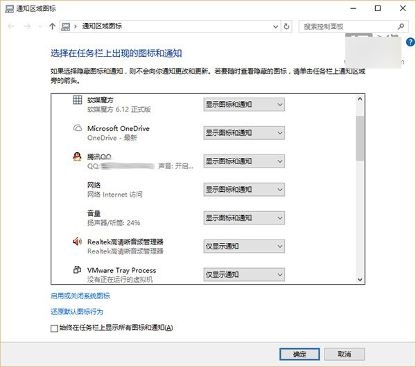 今后只要打开该快捷方式,就可以使用传统方式进行通知区域图标设置。