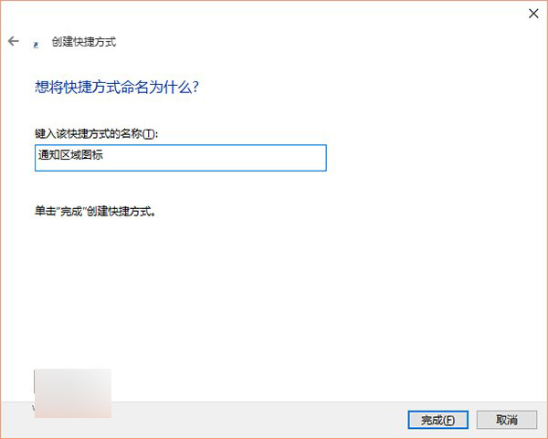 3、点击下一步后,给该快捷方式命名,可以为“通知区域图标”