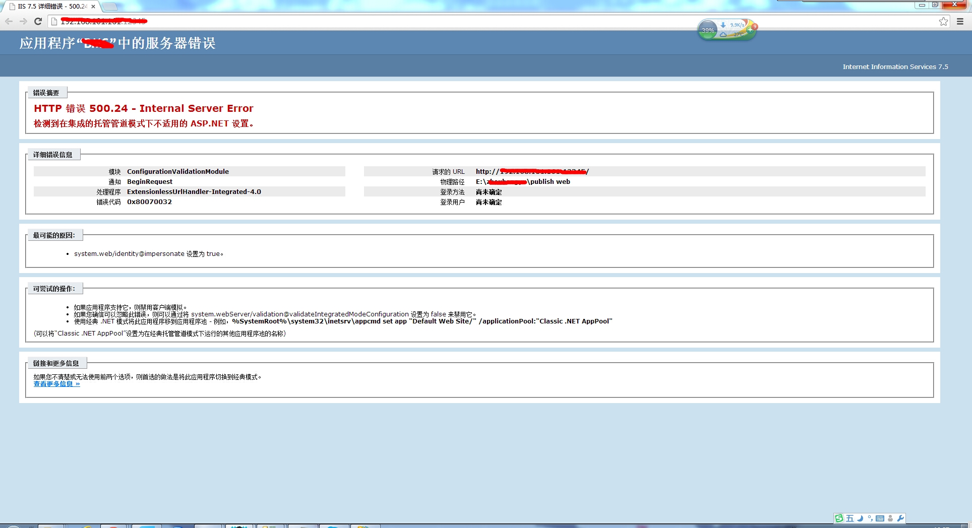 问题一,检测到在集成的托管管道模式下不适用的ASP.NET设置。