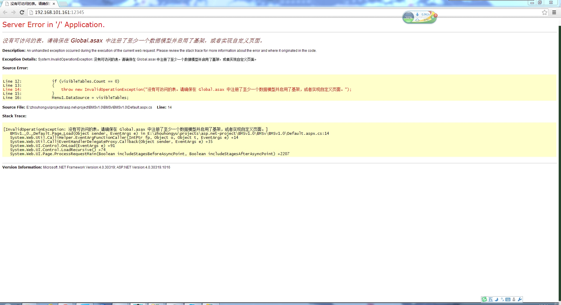 问题三,没有可访问的表。请确保在Global.asax中注册了至少一个数据模型并启用了基架,或者实现自定义页面。